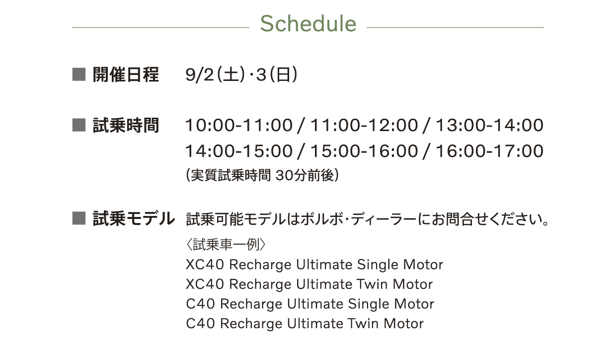 9/2(土)、9/3(日)にEV試乗会を開催します。