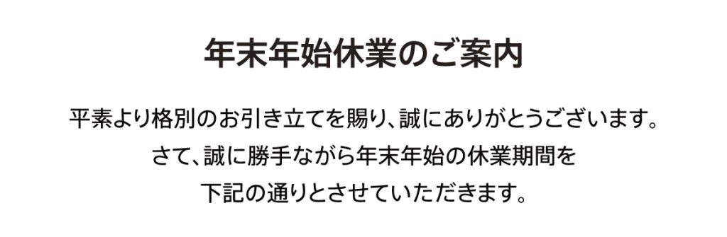 長期休暇となりご迷惑をおかけしますが、何卒ご理解・ご協力をお願いいたします。