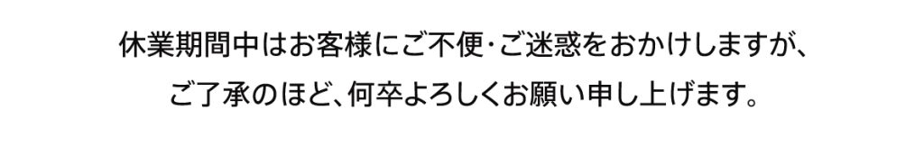長期休暇となりご迷惑をおかけしますが、何卒ご理解・ご協力をお願いいたします。