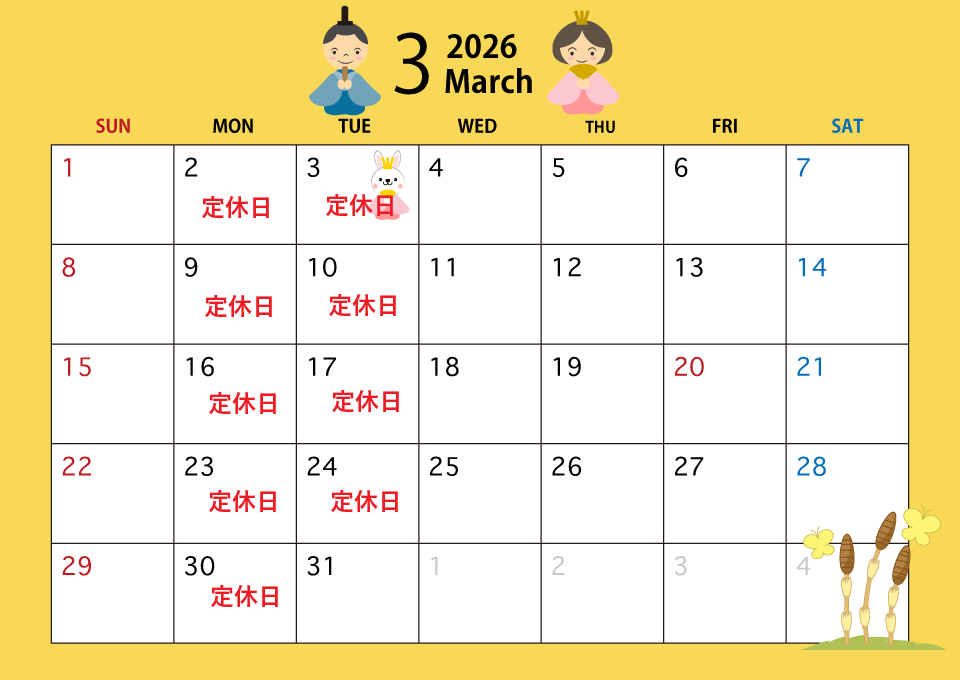 3月定休日のお知らせ