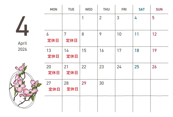4月定休日のお知らせ